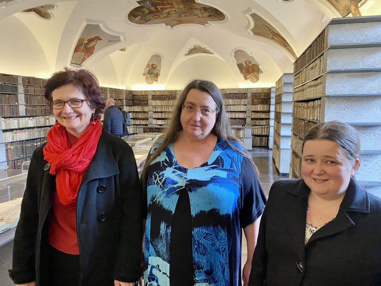 Attempts to return the library to its original appearance and previous function began to take a specific form six years ago, when UP Faculty of Arts (UP FA) students began coming to the monastery for a practical summer course in archiving. The difficult work was led by UP FA History Department teachers Jana Oppeltová, Ema Šimková, and Věra Slavíková for the entire duration. “We also do field work with our students at other institutions in Bohemia and Moravia. We’ve been going to Želiv Monastery since 2018, always with a group of fifteen to twenty students. Our work there was quite difficult. We had to move the books twice, so every one of the books has passed through our hands at least thrice. In terms of their weight, it would be like moving three and a half elephants,” said Jana Oppeltová with a laugh.