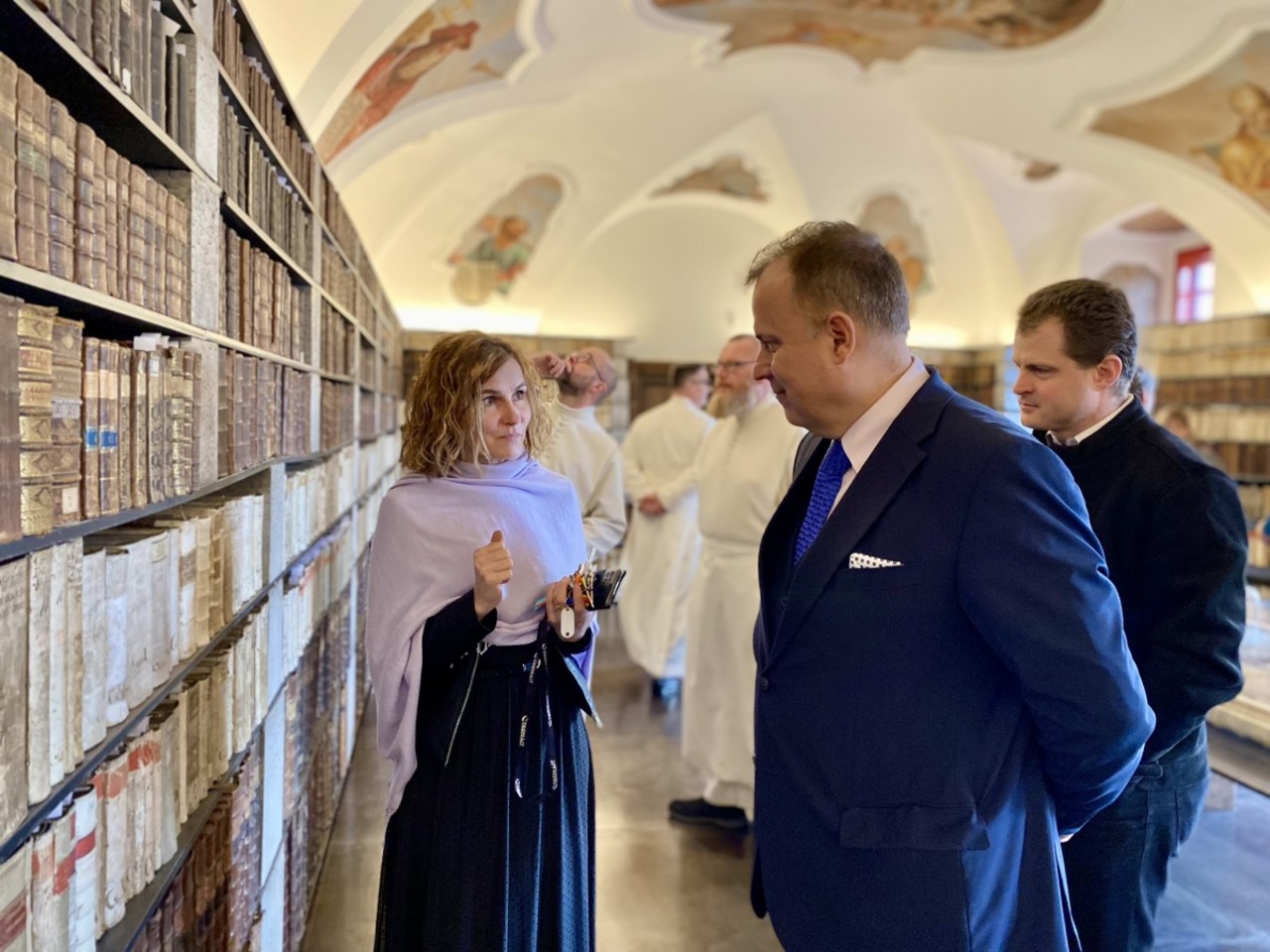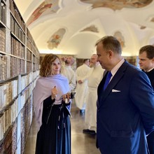 In addition to the newly restored library, Želiv Monastery also opened the newly renovated spaces of the ancient prelature – the abbot’s residence – before the start of this year’s tourist season. “We are very grateful here for the cooperation of Dr Jana Oppeltová, who wrote the exhibition brochure, and with her colleagues from the Palacký University Faculty of Arts and from the Hroznata Academy at Teplá Monastery for its splendid installation,” added Spišák. The ancient prelature is now part of the monastery tour, and the newly-installed exhibition acquaints visitors with archaeological findings and the abbot’s lodgings as they looked at the start of the 20th century, including the bedroom, study, dining room, salon, private chapel, library, and monastery museum. “I would like to thank Palacký University, its employees and students, from the bottom of my heart. Without their efforts, dedication, expertise, and remarkable enthusiasm, we never would have accomplished this. And above all, we never would have achieved the return of these historic volumes to their rightful place after almost seventy years,” the abbot added.