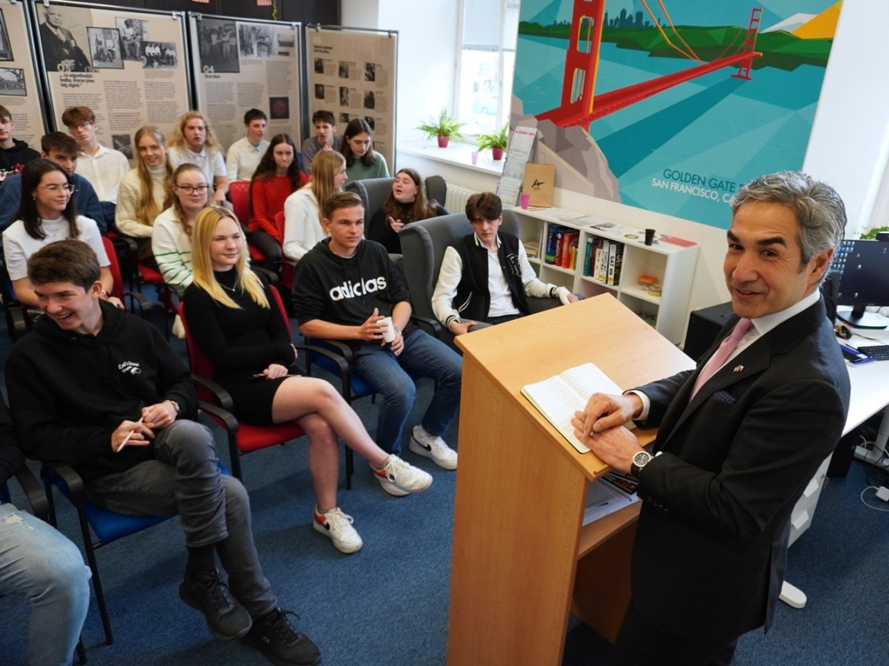 After the Rector’s Office, Sabet traveled to the American Center, which opened its premises last year at 8 tř. Svobody Avenue, where students from Olomouc’s Čajkovského high school awaited him. The students were interested not only whether the ambassador had learned some Czech, but also whom or what he missed being away from home. The ambassador spoke on a broad range of topics, from the possibilities of studying in the USA to the economic growth of China. “Meeting young people has always charged me with positive energy. You asked me some pretty tough questions, for which I truly thank you. And I’m keeping my fingers crossed for your further education,” the ambassador told the audience, which included his wife Lauren.