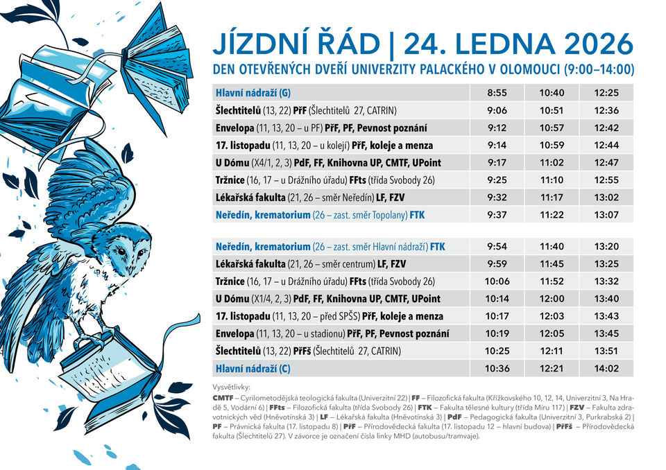 - 10:00–11:00 Seznamte se s FF UP (1. informační blok o studiu)