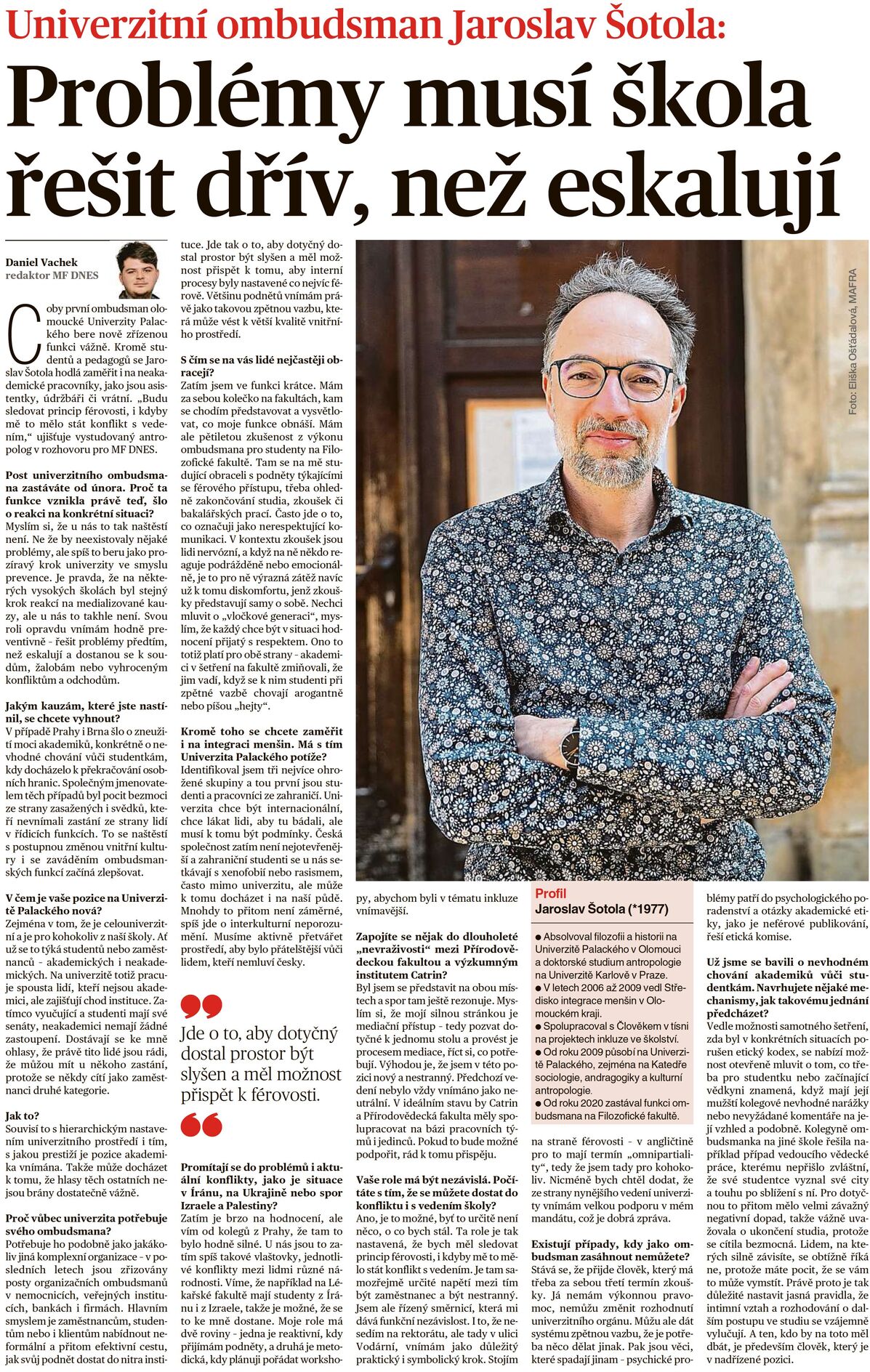 Univerzitní ombudsman Jaroslav Šotola
