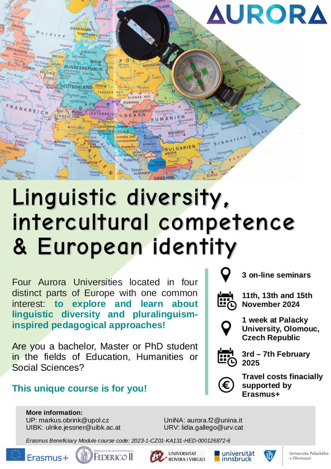 The first one was “Linguistic diversity, intercultural competences & European identity”, which ran between 3rd and 7th February. Students and staff from 6 different universities around Europe met at in Olomouc for the second iteration of this course, organised by the Language Centre in cooperation with Università degli Studi di Napoli Federico II in Naples, Innsbruck University, and Universitat Rovira i Virgili in Tarragona, under the auspices of the Aurora network.