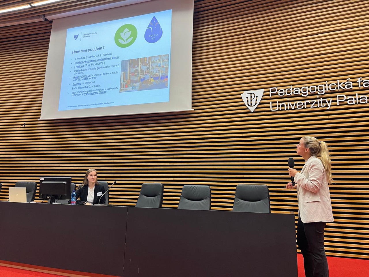 Studentům se dále představili Akademik Sport Centrum, Welcome Office UP, ESN UP Olomouc, Udržitelná univerzita či Centrum podpory studentů se specifickými potřebami. Studenty také osobně pozdravila i paní Mgr. Ilona Utěkalová, která ve své prezentaci předala důležité informace a pravidla ze Správy kolejí a menz.